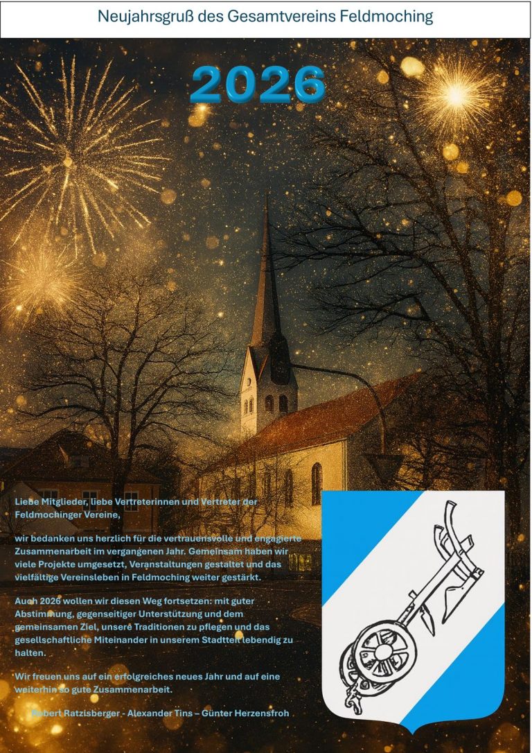 Herzlich Willkommen beim Gesamtverein Feldmoching Aktuelles Wir wünschen euch ein gutes und gesundes 2026 Terminkalender Anschrift: Gesamtverein Feldmoching e.V.Georg-Zech-Allee 1780995 MünchenE-Mail: schriftfuehrer@feldmoching.net Datenschutzerklärung Impressum
